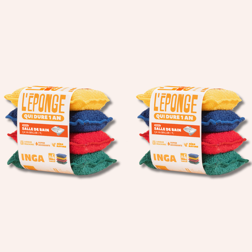 Le pack ultime - notre best-seller - en version Salle De Bain, pensée spécialement pour être efficaces sur TOUTES les surfaces. 4 éponges, 4 couleurs pour différencier les salles d'eau et les usages, pour un pack aussi coloré que pratique :