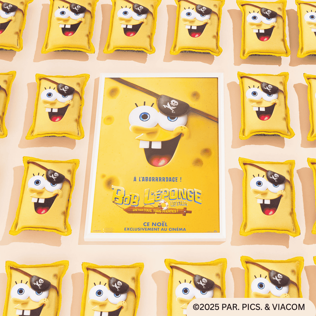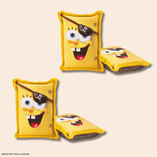 Embarquez pour l’aventure avec cette éponge lavable INGA à l'effigie de la plus célèbre des éponges carrées, pour fêter la sortie du film Bob l'éponge, Un pour tous, tous pirates le 24 décembre 2025 !