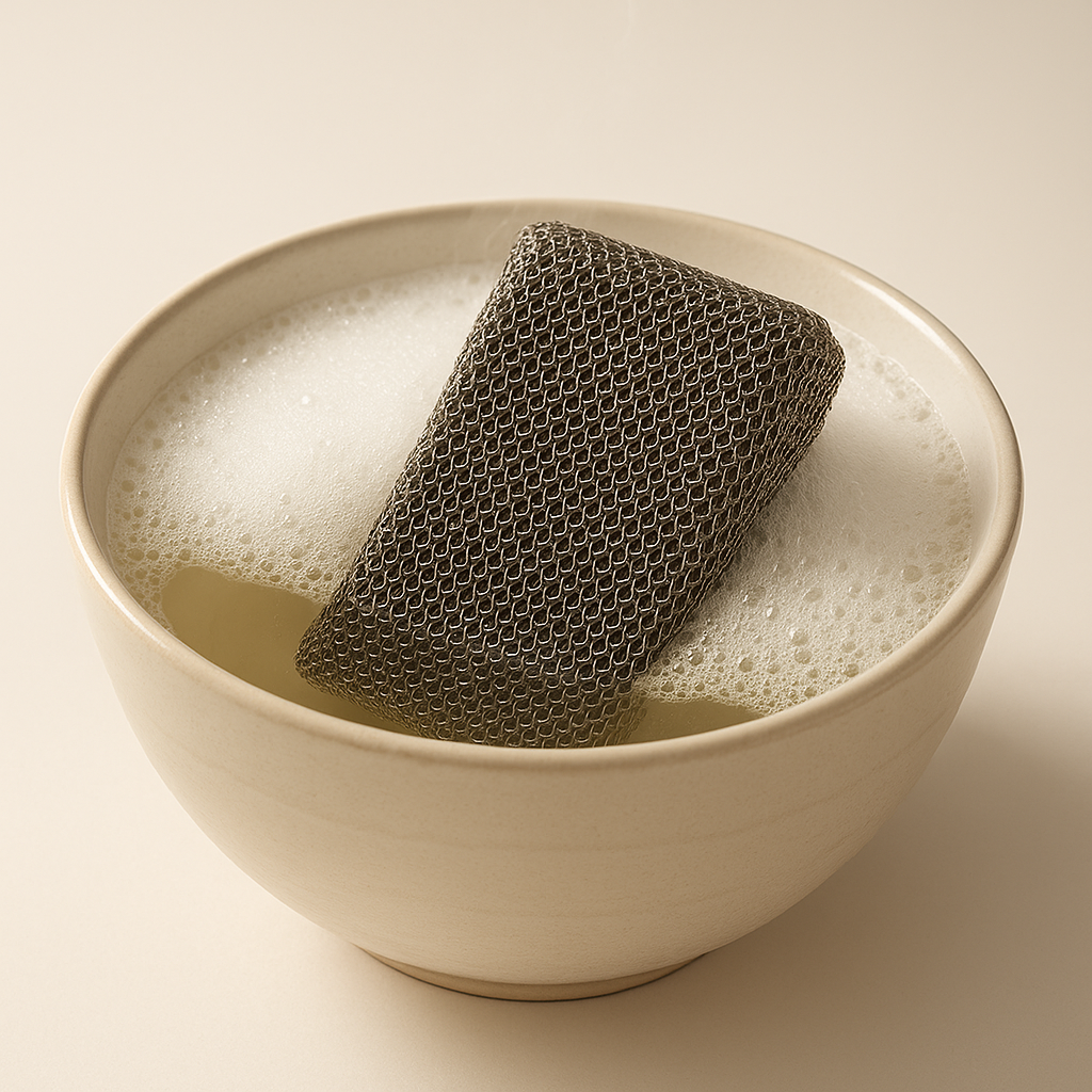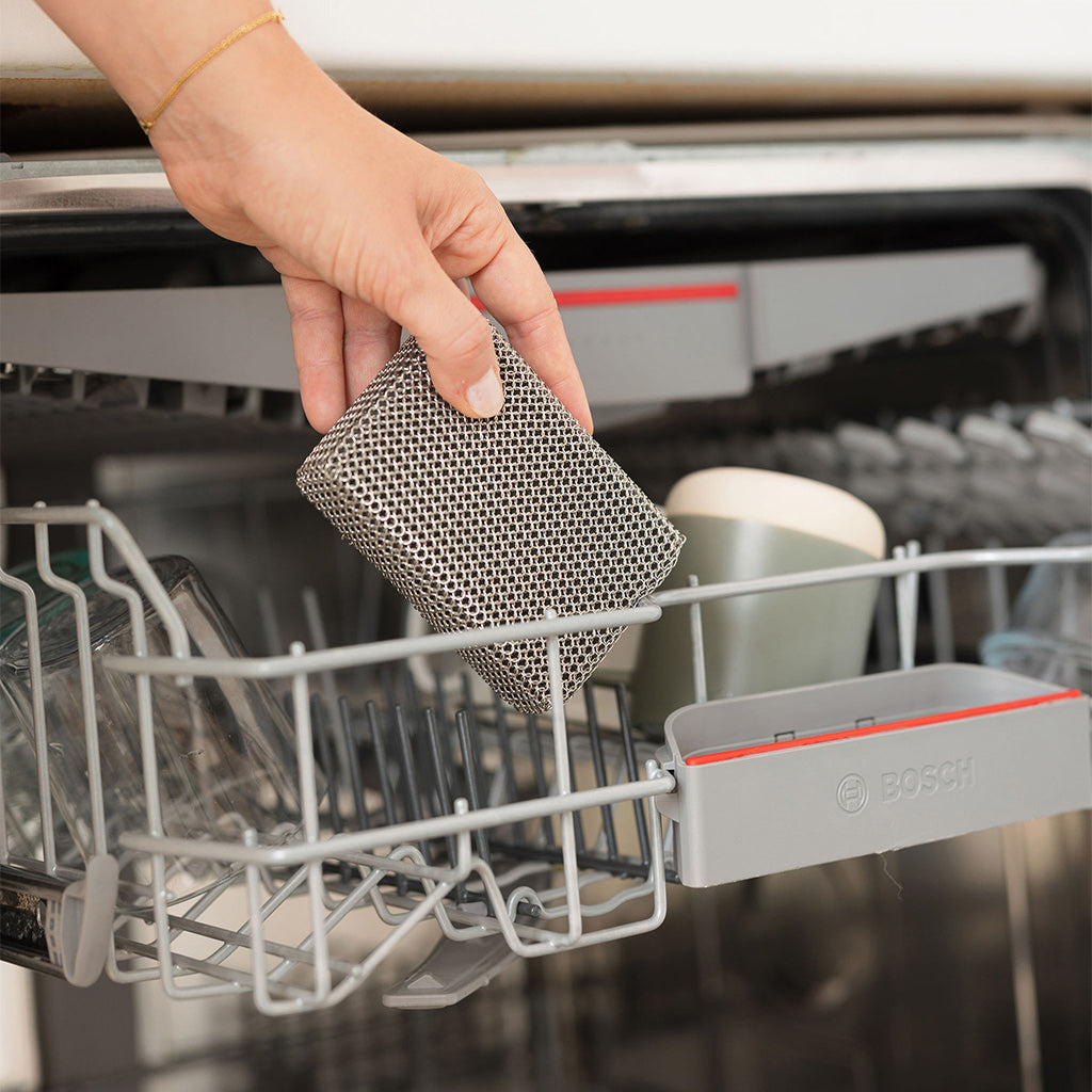 Après utilisation, l’éponge en acier INGA se lave au lave vaisselle. Si vous avez utilisé votre éponge sur des surfaces grasses, trempez-la quelques heures dans un mélange d’eau chaude et de liquide vaisselle avant de la passer au lave-vaisselle. Et hop, une éponge comme neuve !