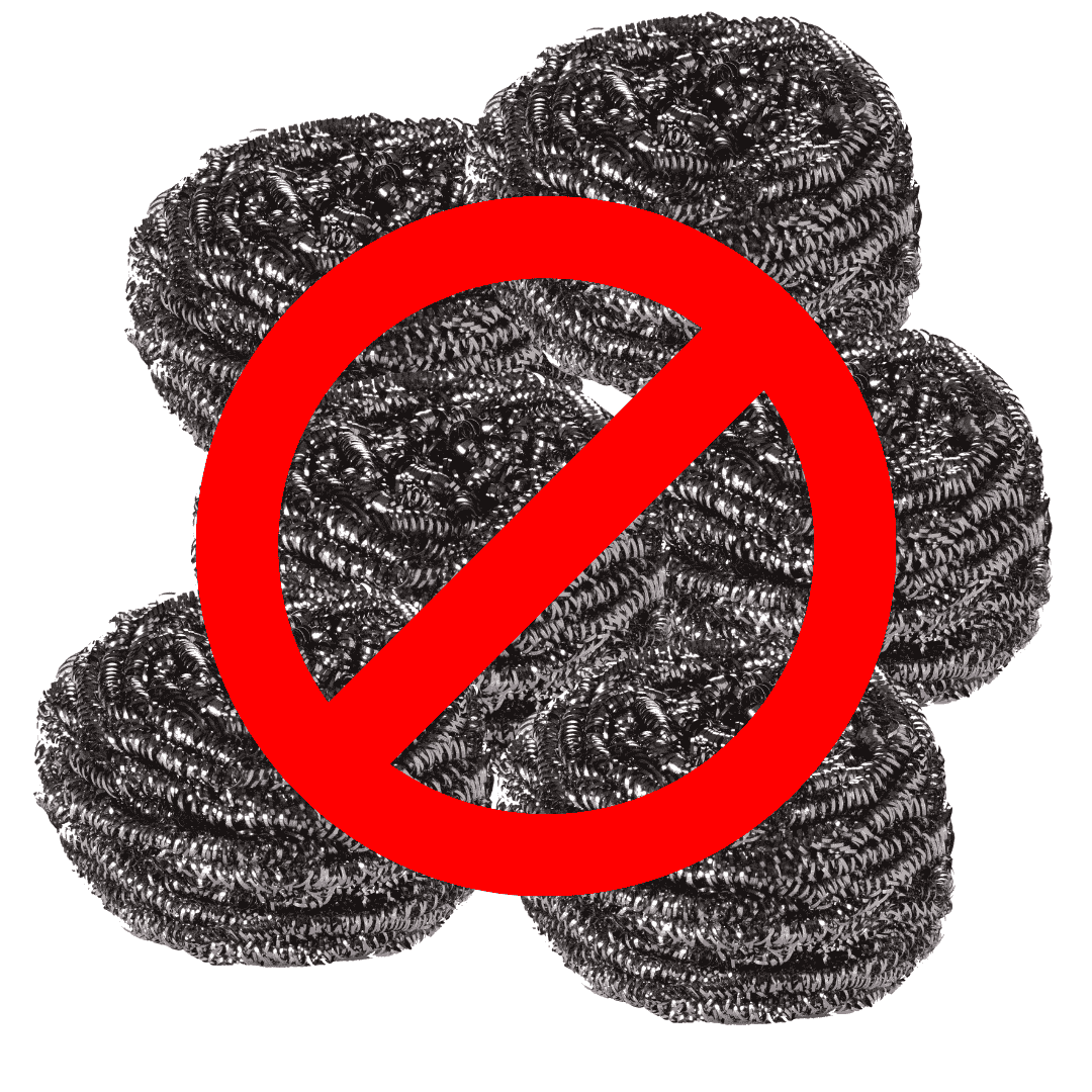 Notre éponge en acier inoxydable ne doit JAMAIS, AU GRAND JAMAIS, être utilisé sur certaines surfaces trop fragiles dont :