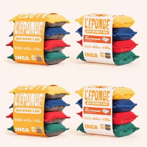Avec ce pack, vous pouvez rayer pendant un petit moment le mot « EPONGES » de votre liste de courses. Et oui, ce pack de 8 éponges, c'est ce qui se fait de mieux en terme de complémentarité depuis Batman et Robin ou Mario et Luigi. Il contient 2 types d'éponges différentes à chaque fois en 4 couleurs différentes pour des usages différents :