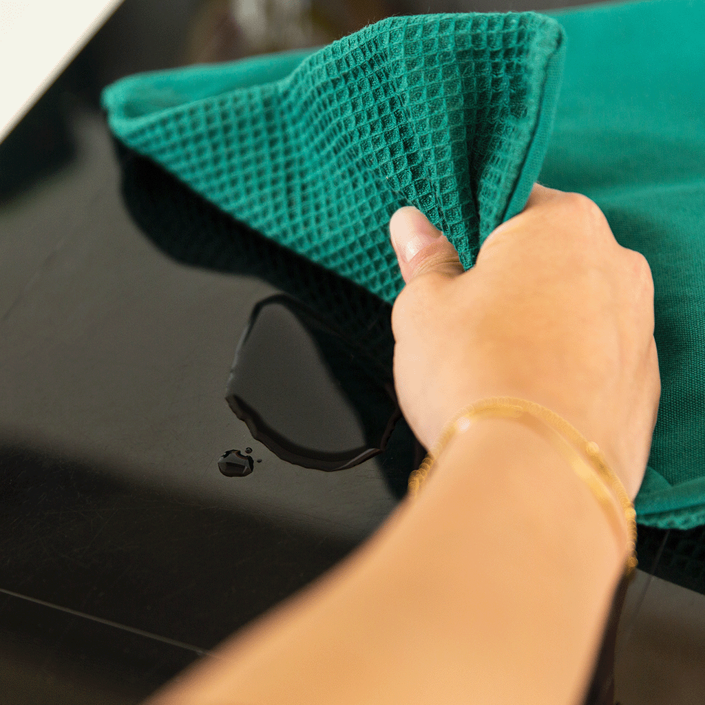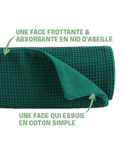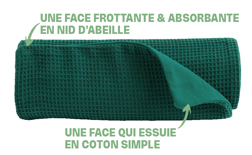 Multi-fonction puisqu’il remplace à la fois votre torchon, votre lavette, votre essuie-tout jetable… Tout en étant plus efficace grâce à sa double couche de coton bio, dont une en nid